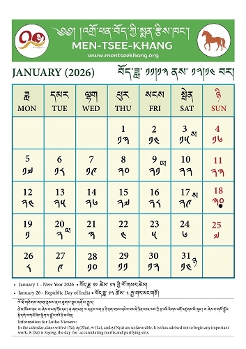 Wall Calendar 2026, Tibetan Year 2153 Fire Horse Year