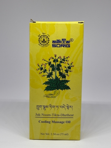 This Cooling Massage Oil is formulated in accordance with the Tibetan Science of Healing to relieve symptoms of blood and Tripa associated disorders such as prickly sensation, fatigue as well as muscle and upper back pain. It also helps reduce itchiness and promote radiant skin.
